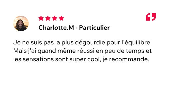 La seule condition pour rider, c’est d’avoir envie de monter dessus ! Pour une personne qui a l’habitude des sports de planche tels que snowboard, surf sur mer, wakeboard, kitesurf, etc. quelques secondes suffiront. Pour les novices dans ces sports, il faudra compter 10 min avant de partir en balade. 😁